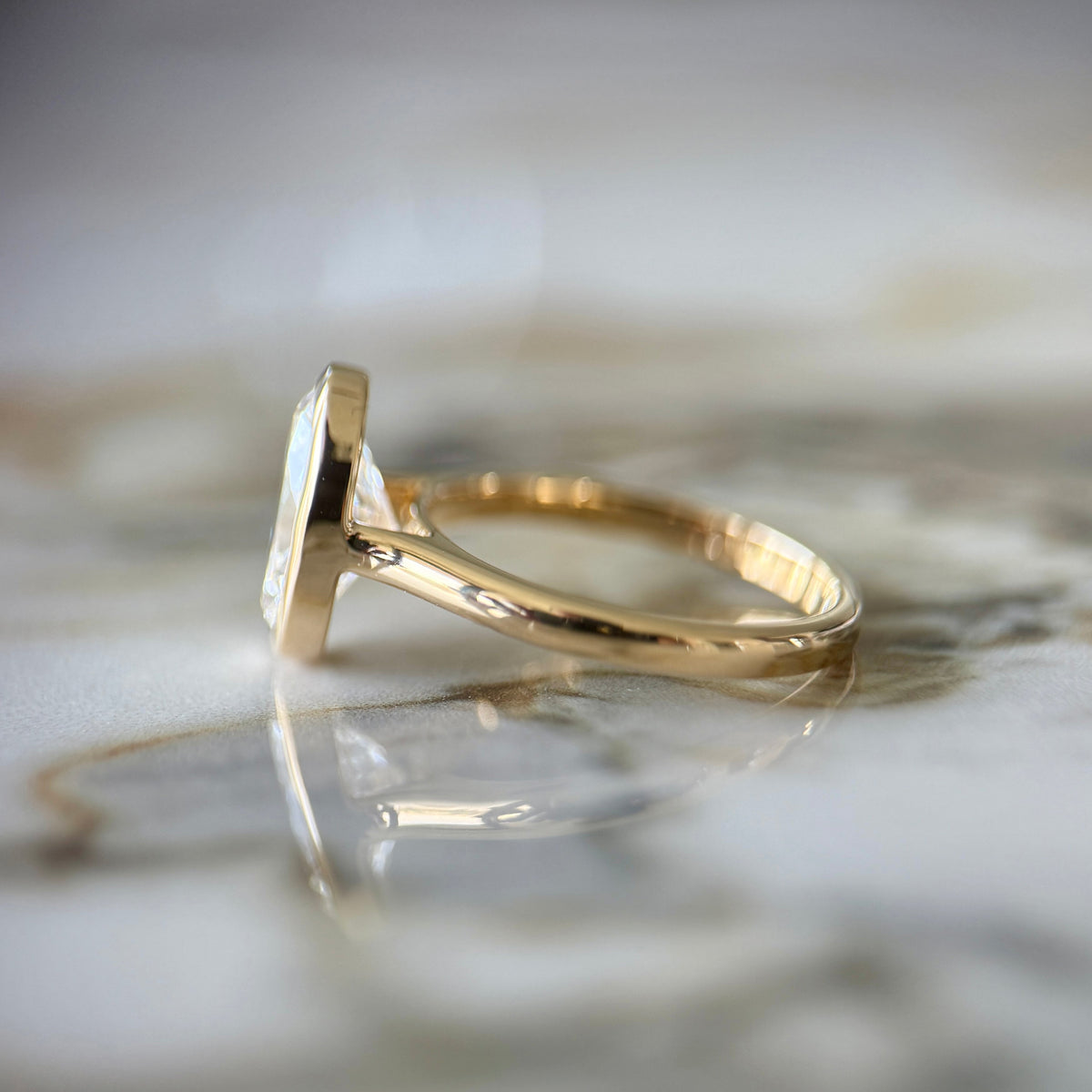 Bezel Set Classic Oval Cut Solitaire - 2ct+ (10mm+, D/E & VVS) - 18k Yellow Gold / F