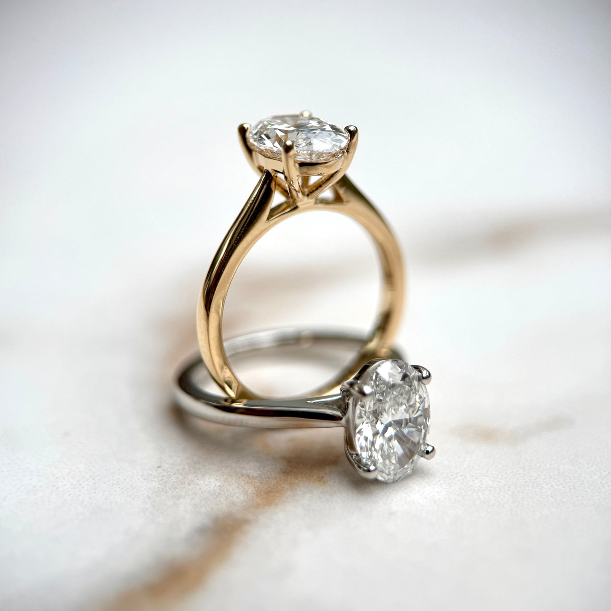 Cathedral Set Classic Oval Cut Solitaire - 1.50ct+ (9mm+, D/E & VVS) - 18k Yellow Gold / F