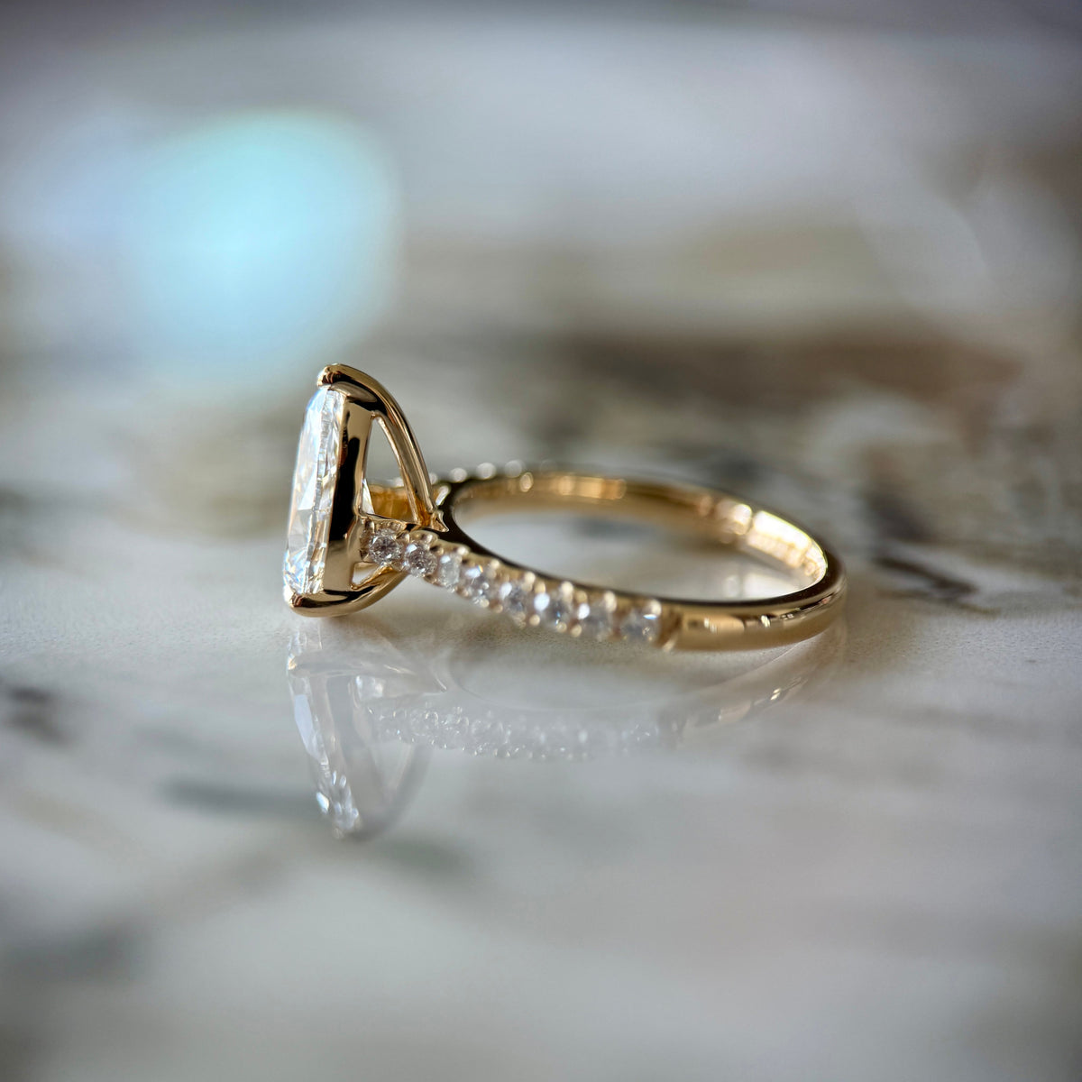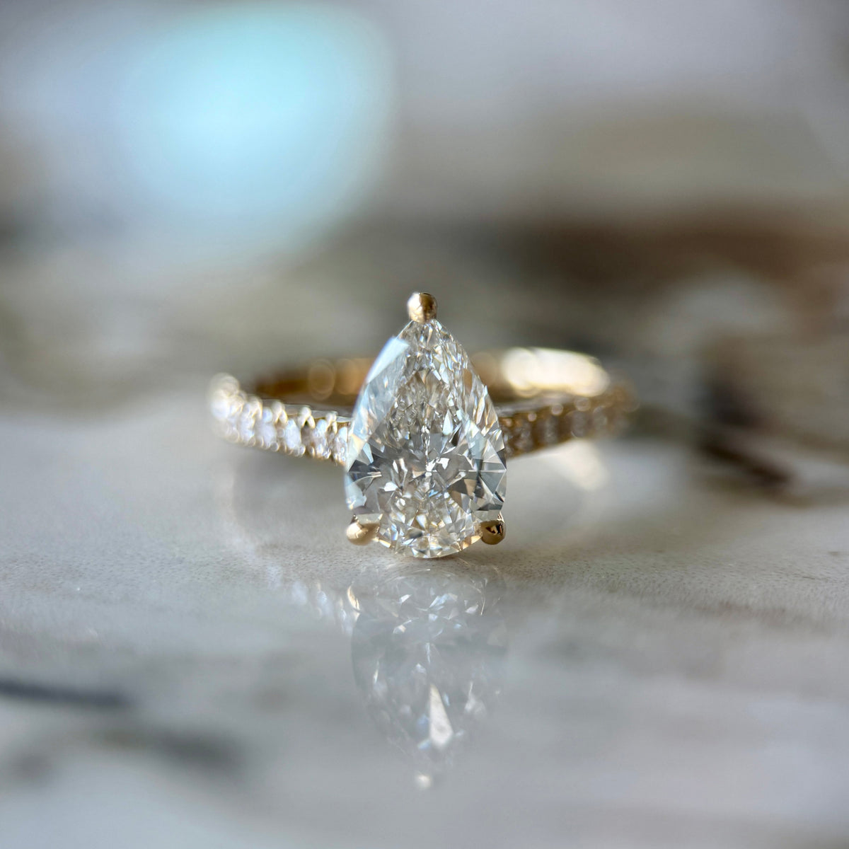 Classic Pear Cut Solitaire with Diamond Band - 1.50ct+ (D/E & VVS) - 18k Yellow Gold / F