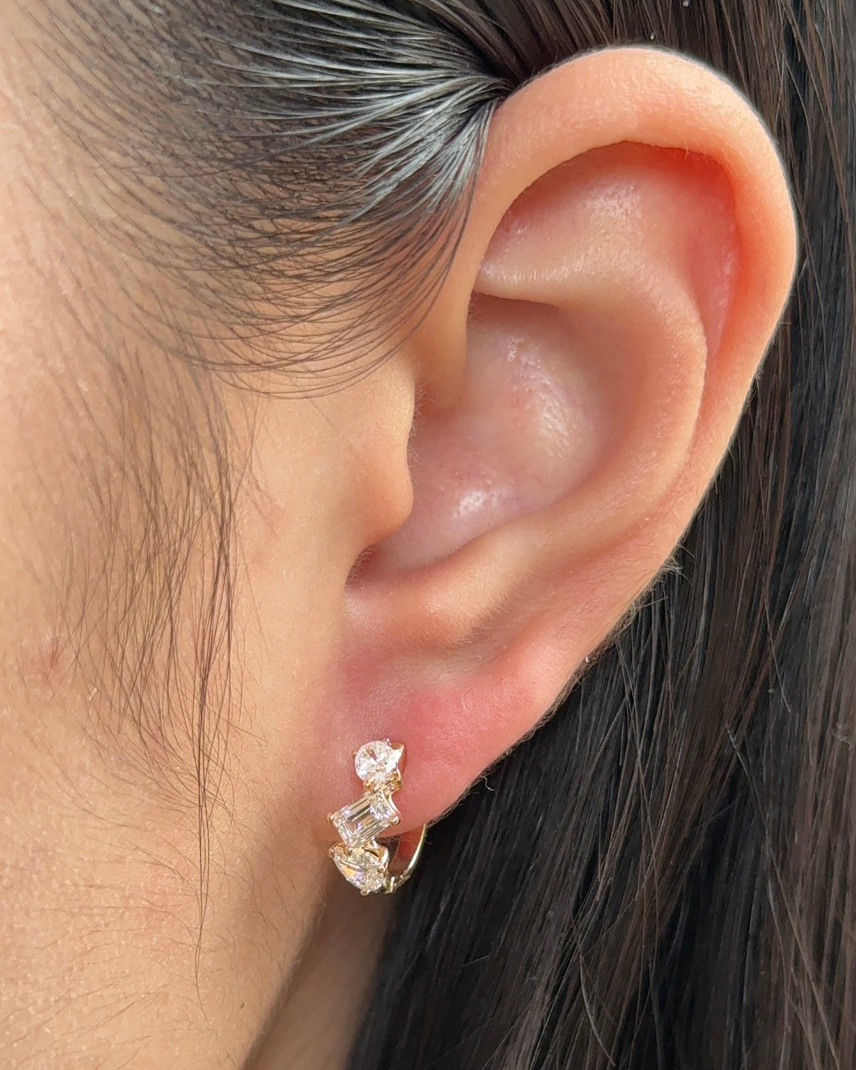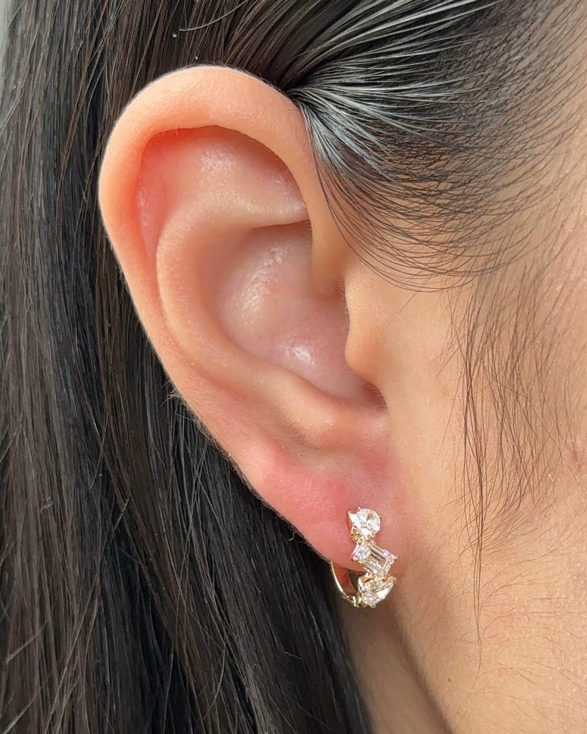 Emerald and Mixed Fancy cut Diamond Hoop Earrings Yellow Gold - 14K Solid Yellow Gold