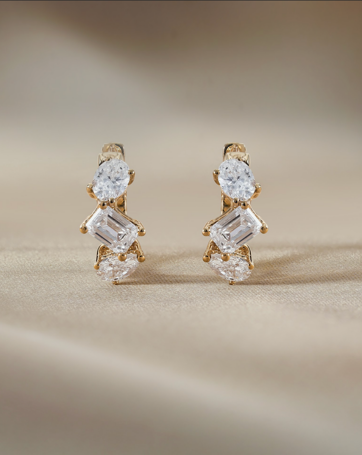 Emerald and Mixed Fancy cut Diamond Hoop Earrings Yellow Gold