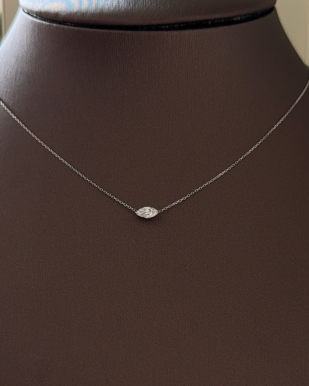 30 Pointer Marquise cut Diamond Pendant Necklace - 18K Solid White Gold / 15 inches