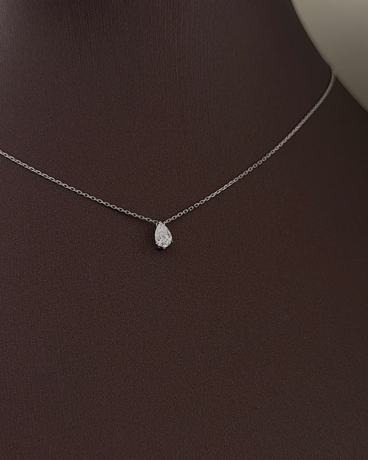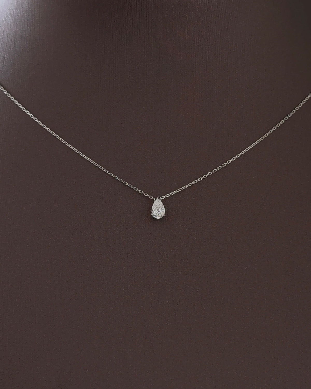 30 Pointer Pear cut Diamond Pendant Necklace - 18K Solid White Gold / 15 inches
