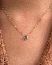 50 Pointer Oval cut Natural Santa Maria Aquamarine Pendant Necklace - 14K Solid Yellow Gold / 15 inches