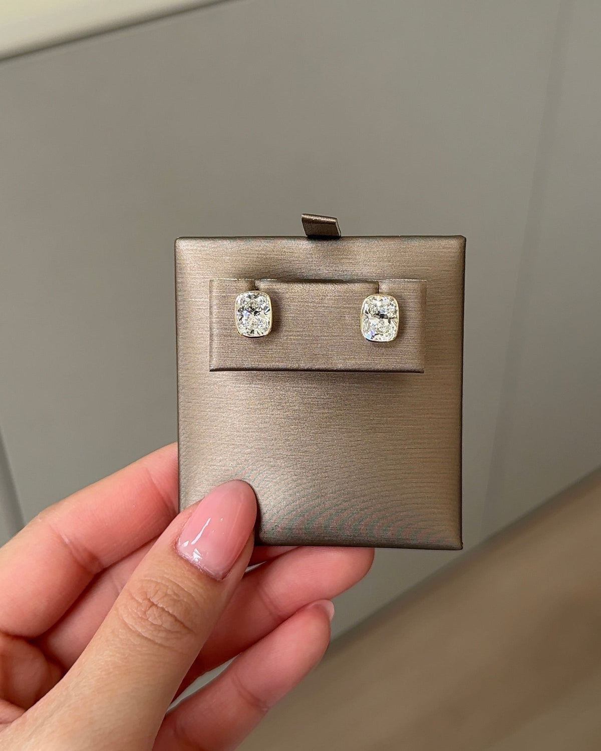 1.5 Carat Cushion Diamond Stud Earrings in Bezel Petite Setting (with Comfort Fit Backing) - 14K Solid Yellow Gold