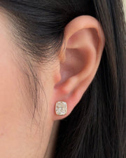 1.5 carats Cushion Cut Diamond Bezel Earring - 14K Solid Yellow Gold