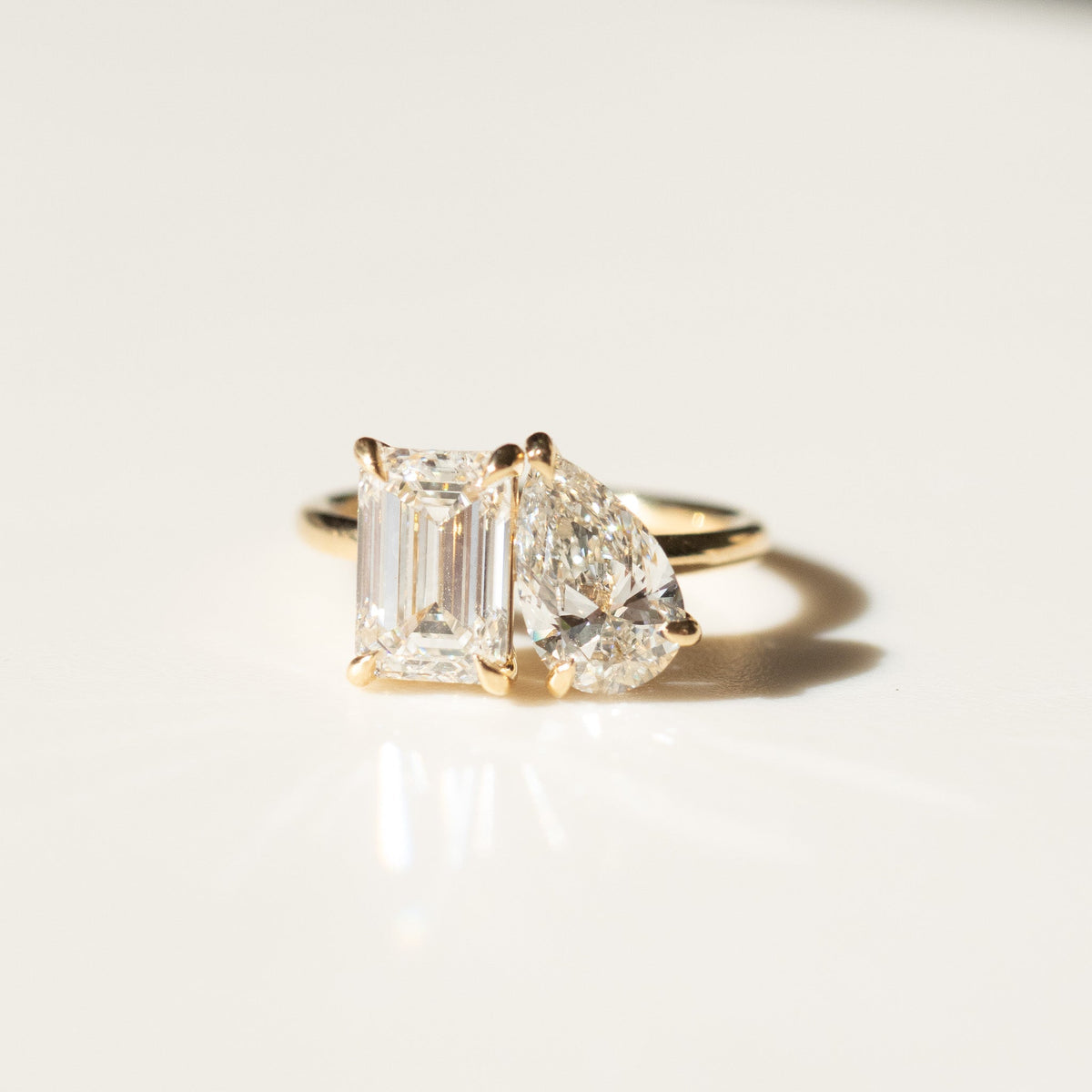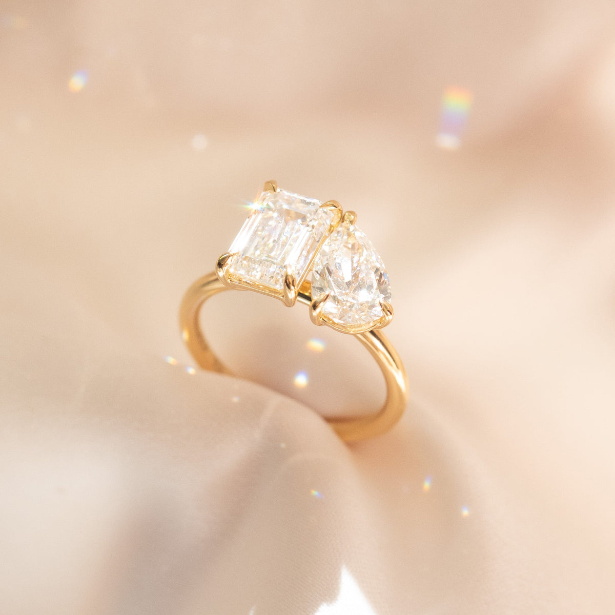 Rosa | Pear & Emerald Toi et Moi Lab-Grown Diamond Engagement Ring - 3ct / 18ct Yellow Gold