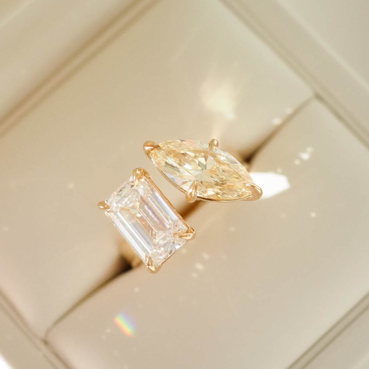 Toi et Moi | 5.3ct Emerald & Marquise Lab-Grown Diamond Engagement Ring