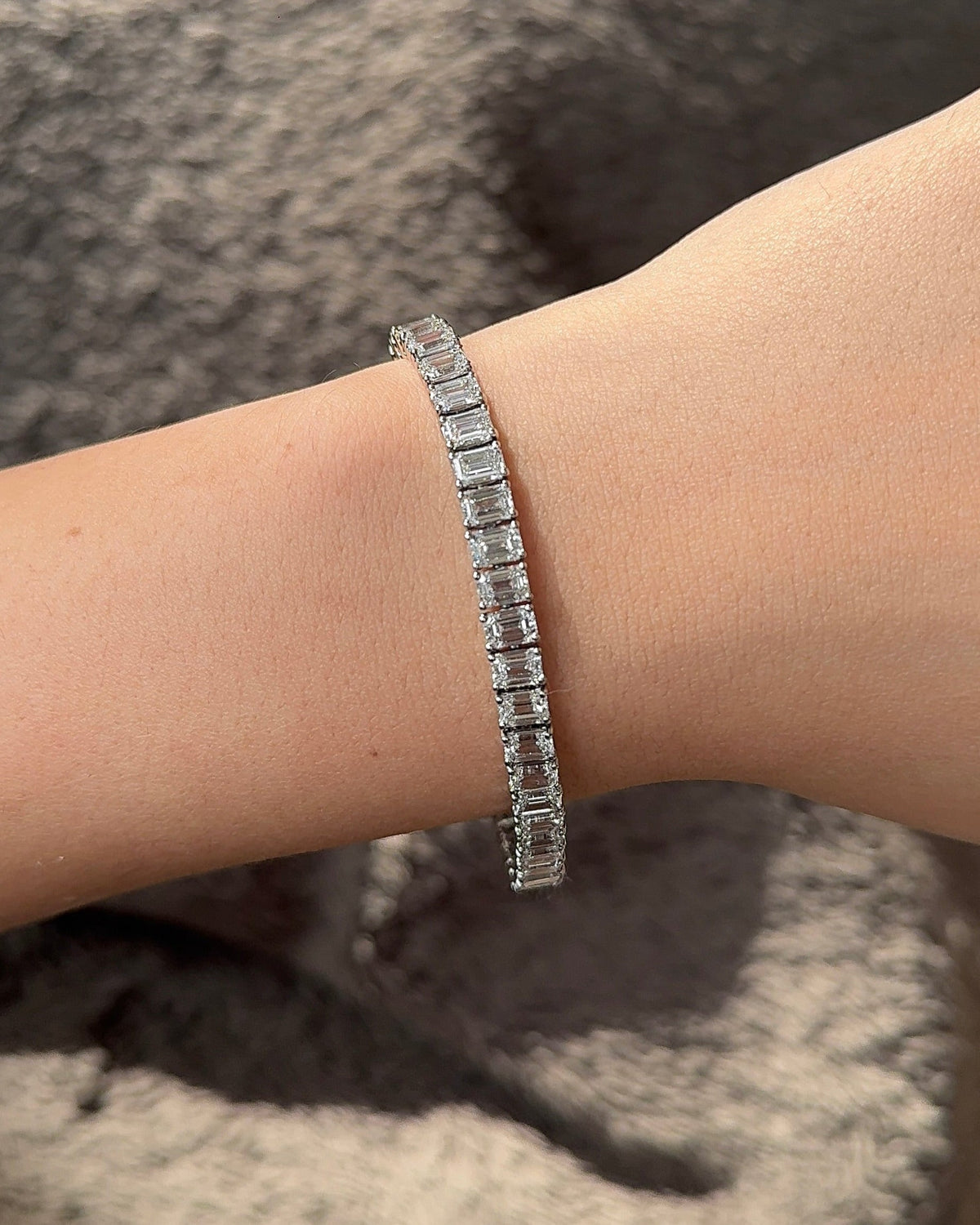 30 Pointer Emerald Cut Diamond Tennis Bracelet - 14K Solid White Gold / 15 centimeter