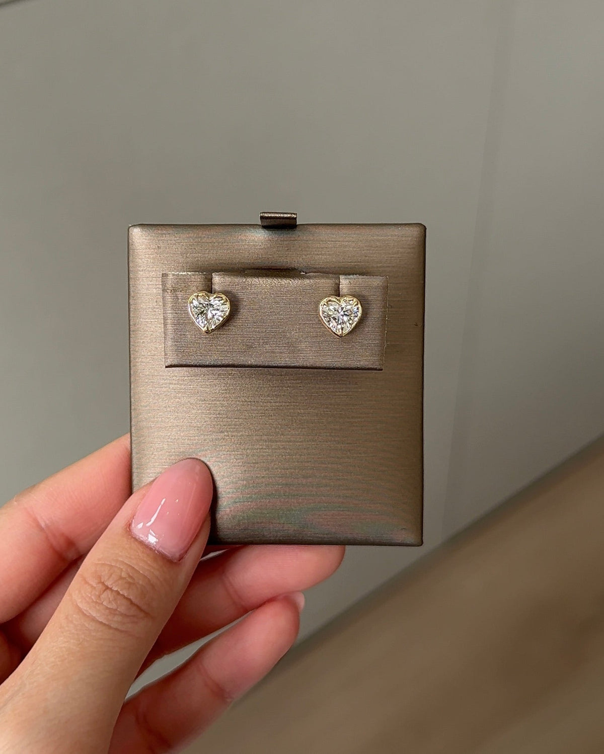 70 Pointer Heart Diamond Stud Earrings in Bezel XL Setting (with Comfort Fit Backing) - 14K Solid White Gold