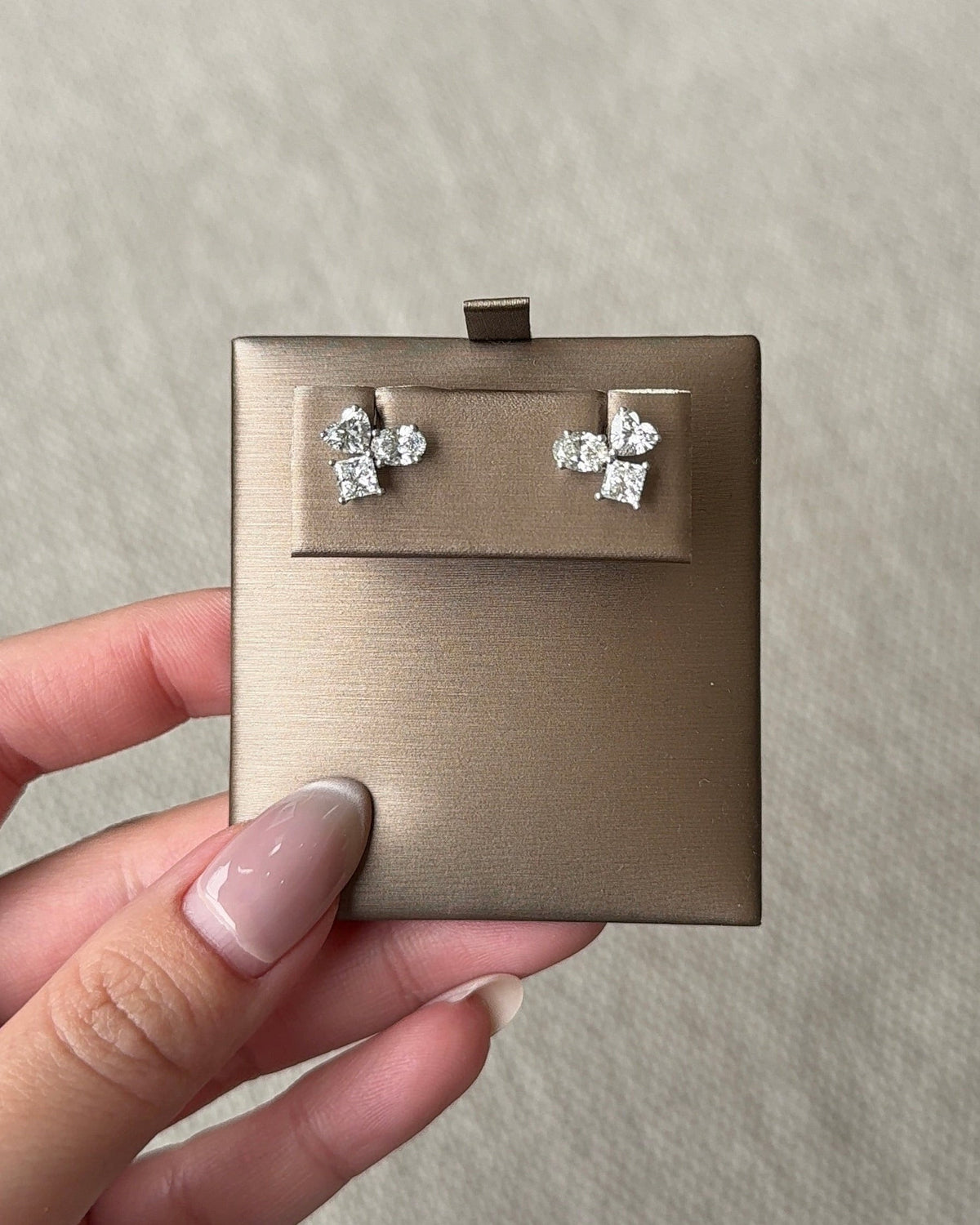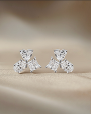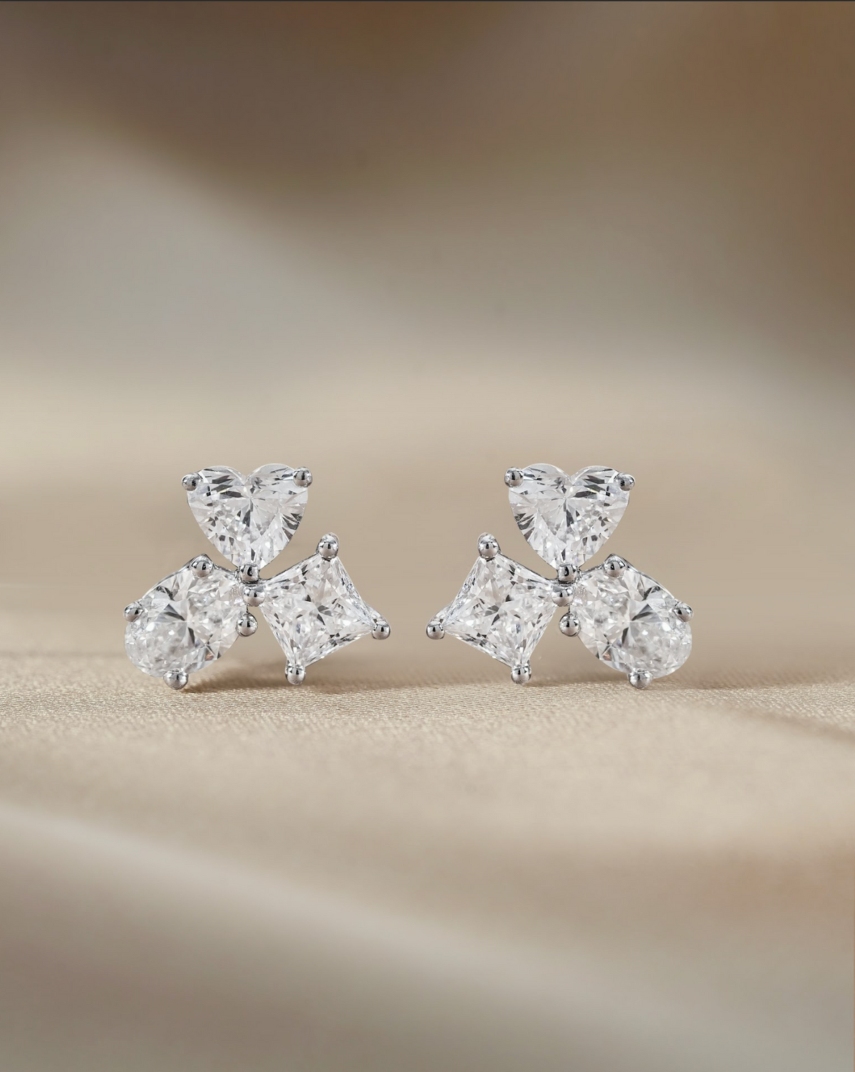 30 Pointer Three Stones Mixed Fancy Cut Diamond Circle Earrings - 14K Solid White Gold